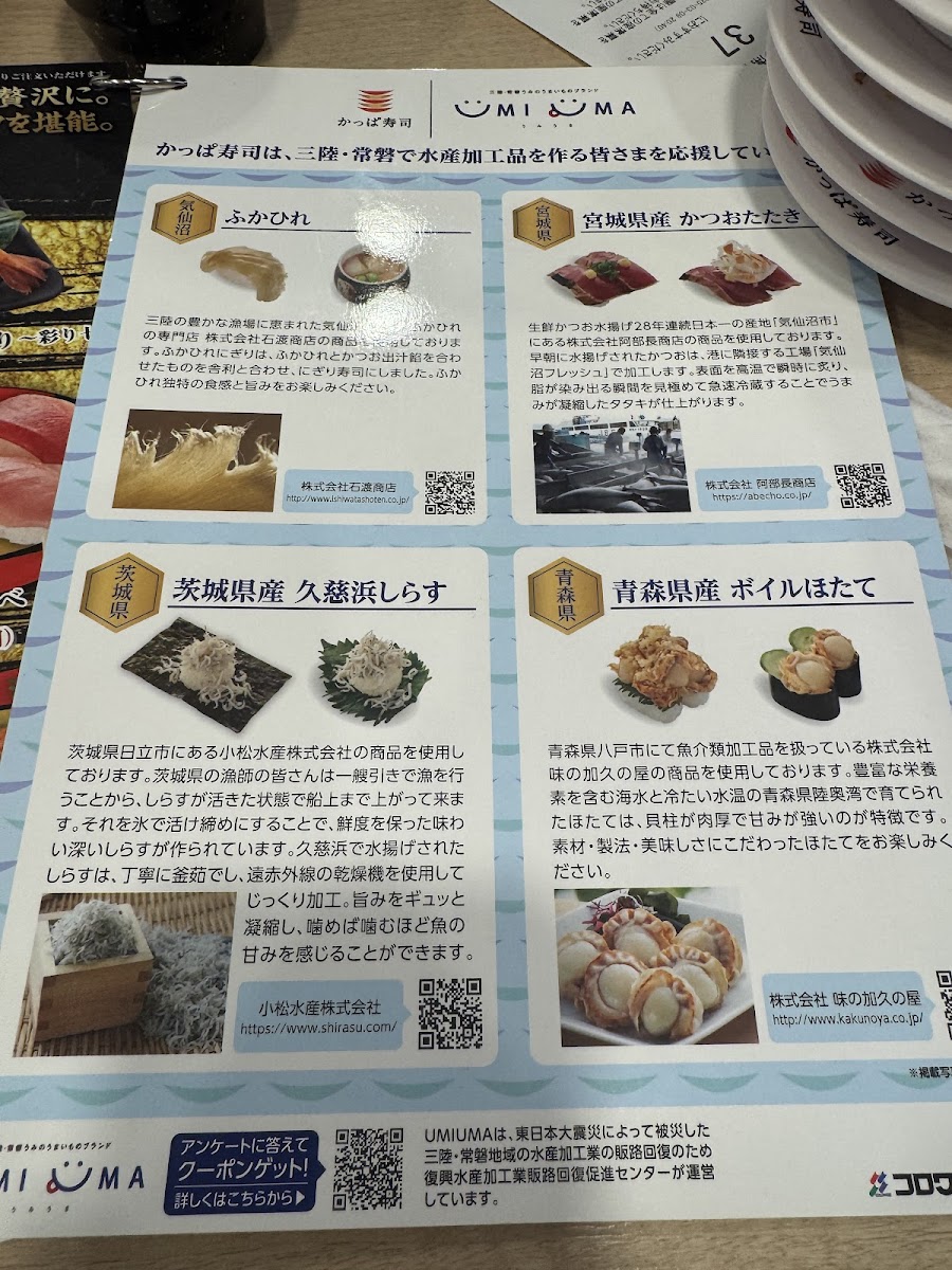 The spacious and inviting atmosphere is complemented by tech innovations like touch-panel ordering and even robot servers, enhancing your meal while maintaining cleanliness. Whether you're drawn in by our renowned tuna offerings or just looking for a cozy spot, Kappa Sushi - Koriyama promises a memorable culinary adventure.
